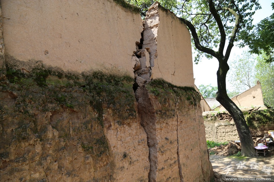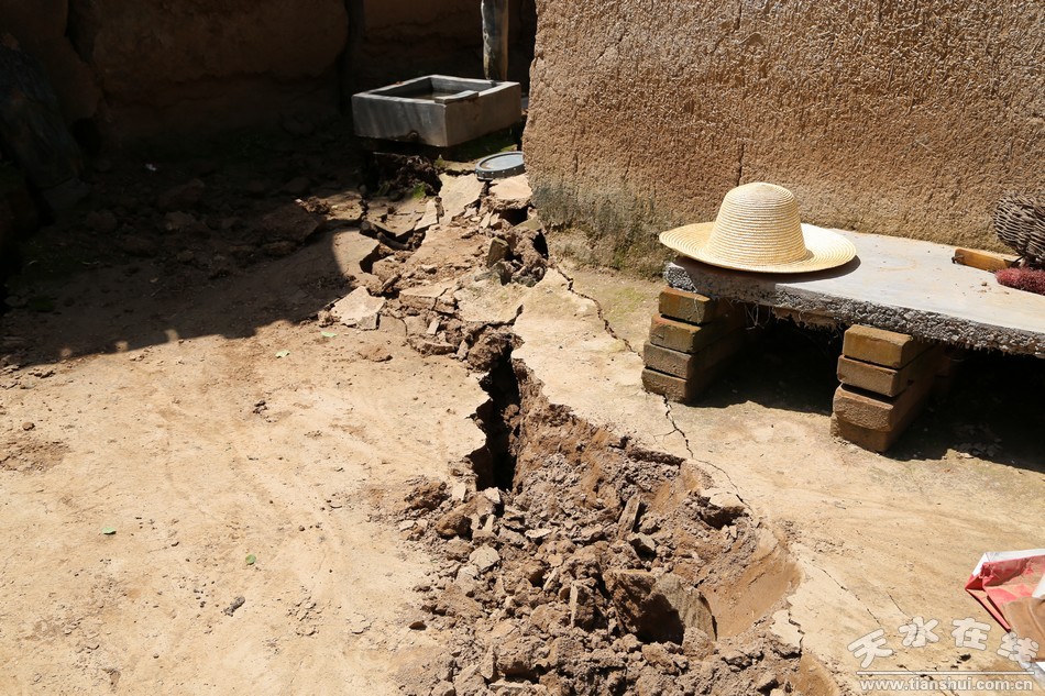 (夜明村曹王自然村所在的山體嚴(yán)重滑坡,村民院子里出現(xiàn)大裂縫,新建的房屋嚴(yán)重?fù)p毀)