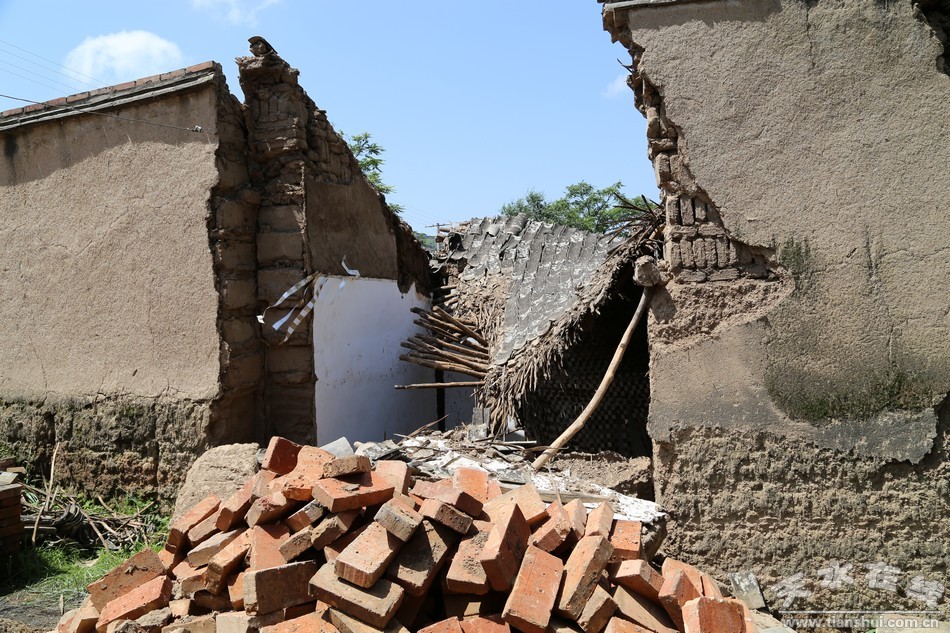 (夜明村曹王自然村所在的山體嚴(yán)重滑坡,整個村莊處在危險地帶,2008年5·12地震后村民重建的新房遭受損毀無法居住)