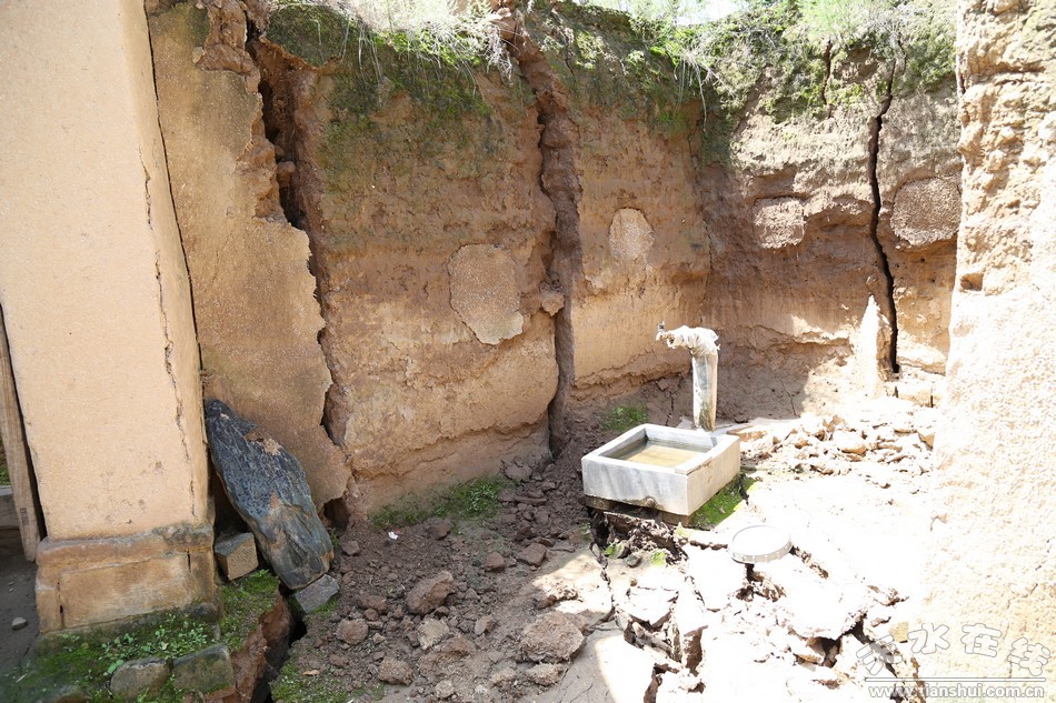 (夜明村曹王自然村所在的山體嚴(yán)重滑坡,村民院子里出現(xiàn)大裂縫,房屋嚴(yán)重?fù)p毀)