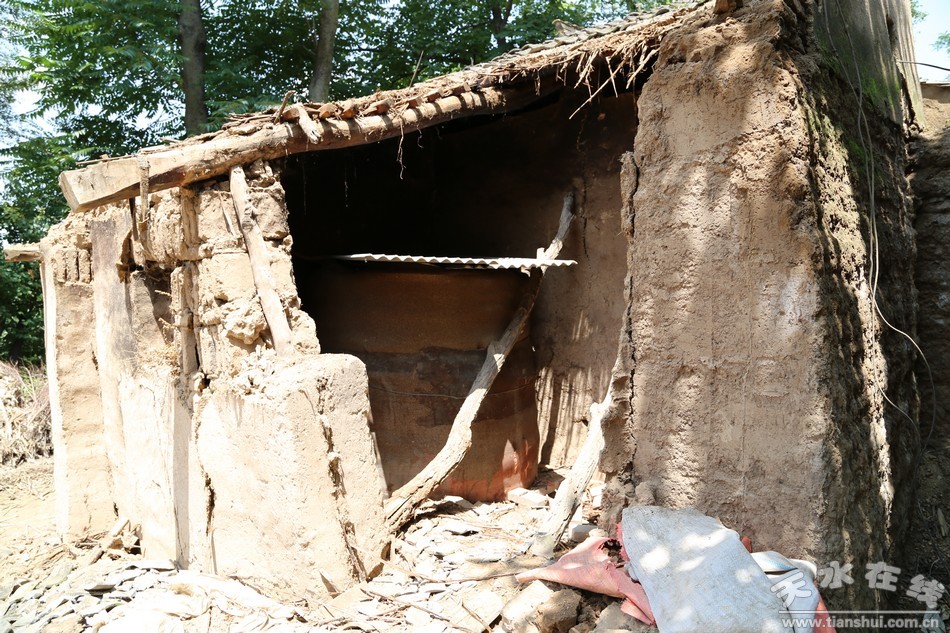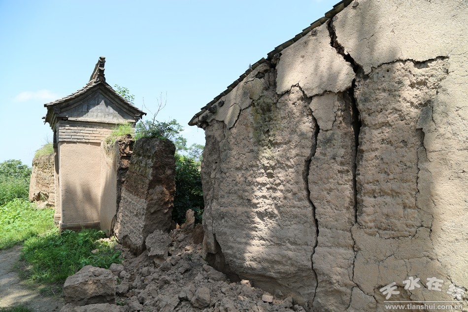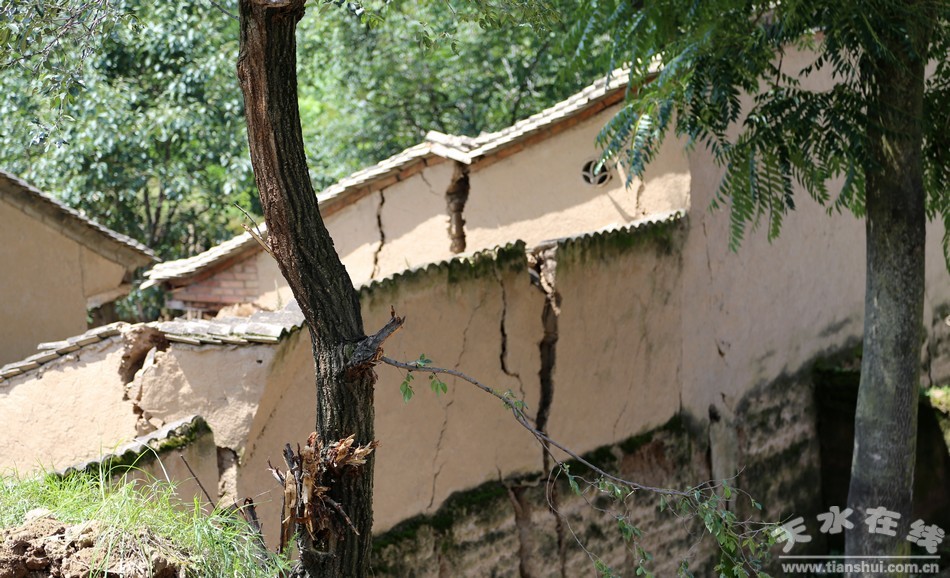 (夜明村曹王自然村所在的山體嚴(yán)重滑坡,整個村莊處在危險(xiǎn)地帶,2008年5·12地震后村民重建的新房遭受損毀無法居。