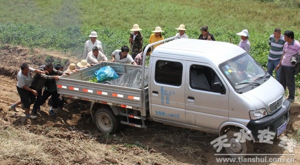 (送菜車(chē)陷入泥坑,干部群眾群上陣推出陷入泥坑的車(chē)輛)
