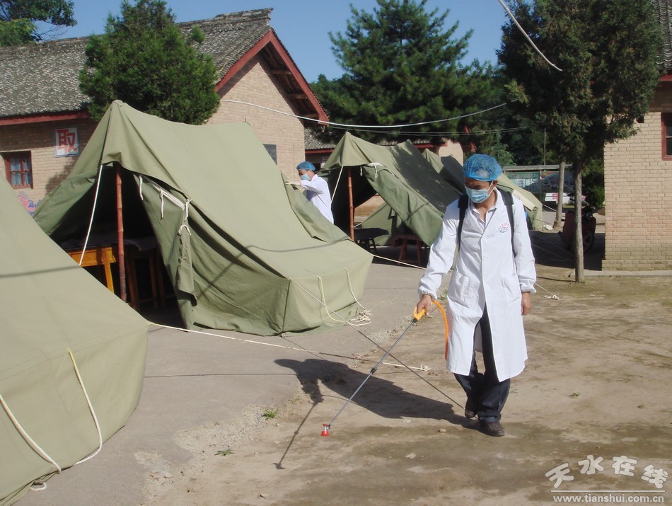 (在受災(zāi)安置點(diǎn)進(jìn)行衛(wèi)生防疫)
