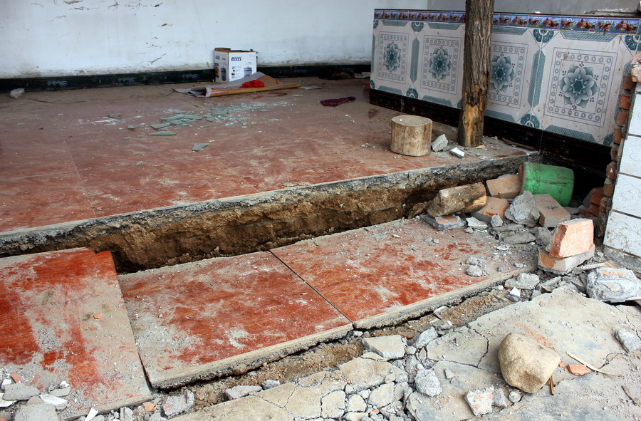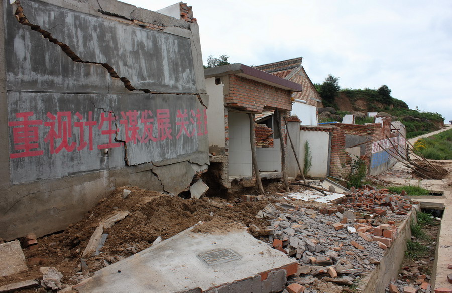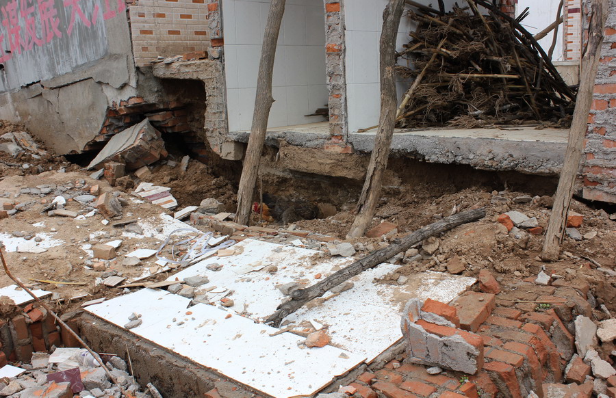 (磨上咀村地面嚴重下陷房屋倒塌)