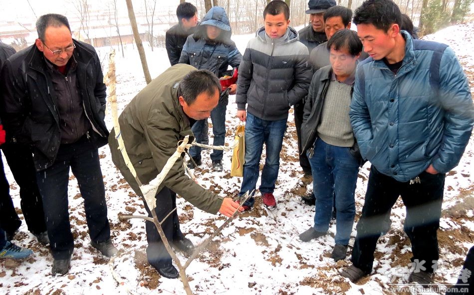 培訓(xùn)會(huì)上,專業(yè)技術(shù)人員針對農(nóng)戶提出的核桃到底能不能致富、新品種核桃如何栽培才能取得經(jīng)濟(jì)收益、如何使核桃安全越冬等問題從觀念和技術(shù)兩個(gè)方面做了深入講解。隨著對核桃營養(yǎng)、保健、醫(yī)療、生態(tài)功能的認(rèn)識(shí)逐步深化,核桃產(chǎn)業(yè)顯示出巨大的發(fā)展?jié)摿Γ哂泻芎玫陌l(fā)展前景,是致富的好路子。老師的話極大地鼓舞了在場的果農(nóng),堅(jiān)定了發(fā)展核桃產(chǎn)業(yè)的信心。在技術(shù)方面,技術(shù)人員用圖文結(jié)合的方式,詳細(xì)講解了嫁接、修剪、病蟲害防治、越冬防寒等技術(shù)要領(lǐng),并用自帶的核桃苗木、剪刀做現(xiàn)場演示。同時(shí)他將自己多年來總結(jié)的四季管理總結(jié)成順口溜——耕作松土肥地力,間作套種增效益,增施肥料強(qiáng)樹勢,整形修剪建骨架,埋土防寒保越冬,這樣方便果農(nóng)的記憶和理解。