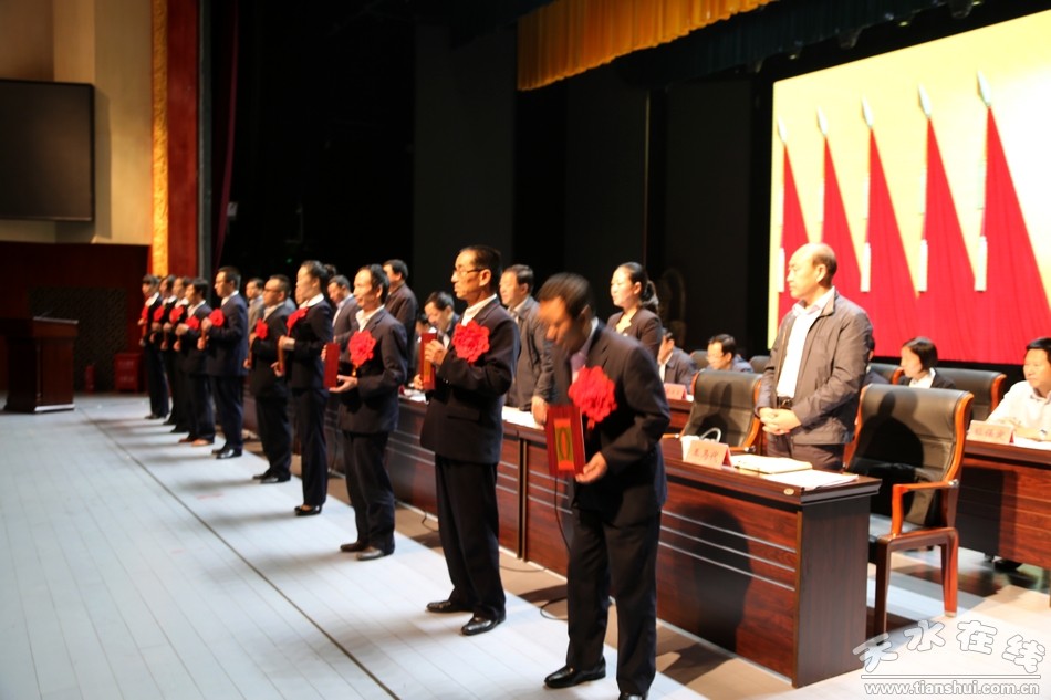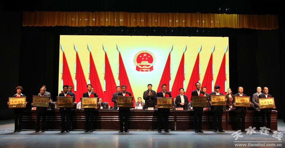 清水縣委書記劉天波出席會(huì)議并講話;縣委副書記、縣長馬越垠主持會(huì)議;縣委常委、宣傳部部長張秀麗宣讀了《中共清水縣委、清水縣人民政府關(guān)于表彰教育工作先進(jìn)集體先進(jìn)個(gè)人、尊師重教捐資助學(xué)先進(jìn)單位和教育光榮家庭的決定》和《中共清水縣委、清水縣人民政府關(guān)于授予天津市河北區(qū)周振明周鈺城扶貧扶智捐資助學(xué)先進(jìn)個(gè)人榮譽(yù)稱號的決定》;縣政府副縣長何敬忠通報(bào)了高考情況,分析了全縣教育形勢;縣四大組織領(lǐng)導(dǎo)為重視教育工作先進(jìn)鄉(xiāng)鎮(zhèn)、先進(jìn)學(xué)校、優(yōu)秀校長、師德模范、教學(xué)能手、優(yōu)秀班主任代表、教育光榮家庭代表、2014年度尊師重教捐資助學(xué)先進(jìn)單位頒獎(jiǎng);先進(jìn)鄉(xiāng)鎮(zhèn)代表紅堡鎮(zhèn)黨委書記李森、先進(jìn)學(xué)校代表清水六中校長岳保界、優(yōu)秀教師代表旺興中學(xué)教師趙彥軍、教育光榮家庭代表2014年全縣文科狀元六中學(xué)生劉建明家長劉保紅分別作了發(fā)言。