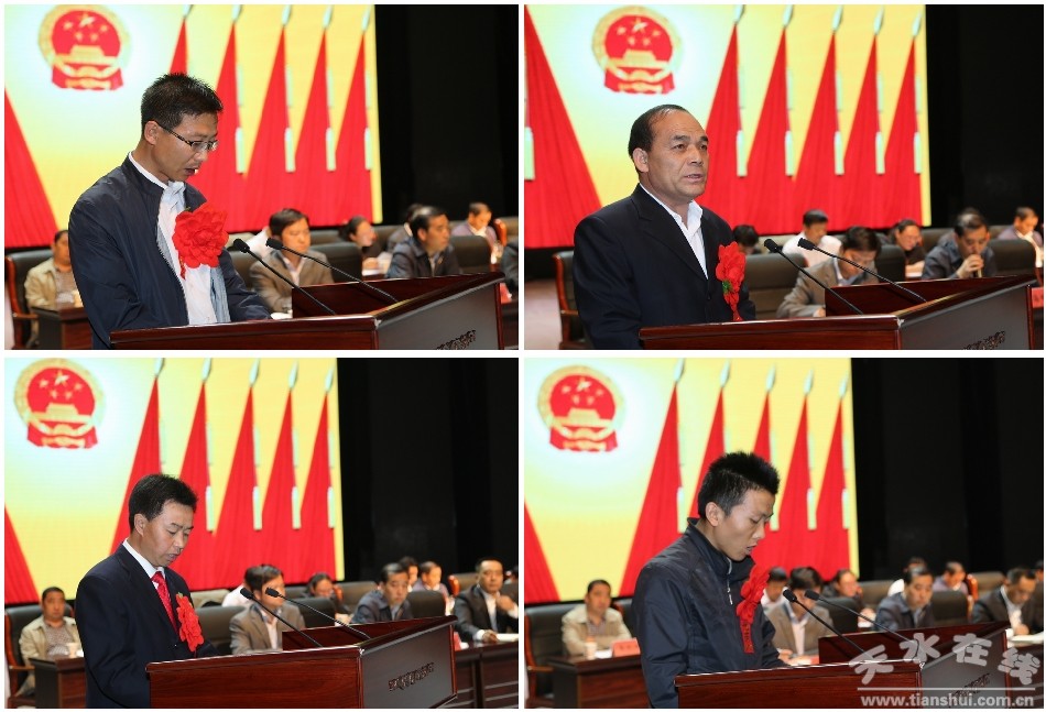 (先進(jìn)鄉(xiāng)鎮(zhèn)代表、先進(jìn)學(xué)校代表、優(yōu)秀教師代表、教育光榮家庭代表分別發(fā)言)