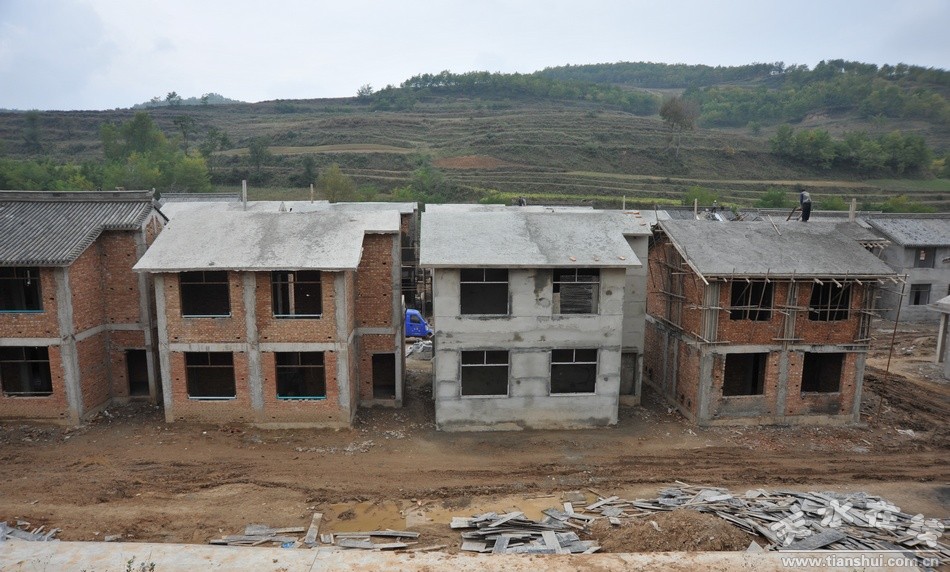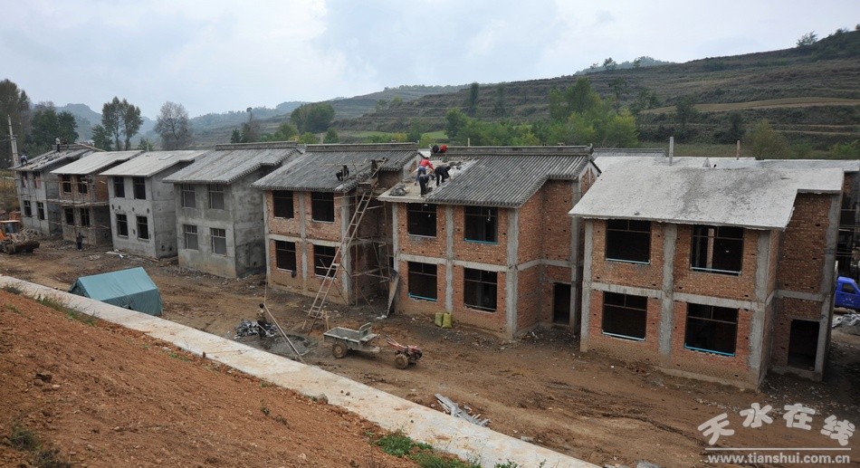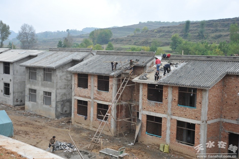 當前,走進秦亭鎮(zhèn)店子村新農(nóng)村建設(shè)現(xiàn)場,一排排二層別墅式新居主體已經(jīng)建成,村民們正在瓦房、粉墻、平整場地,收拾掃尾工程。