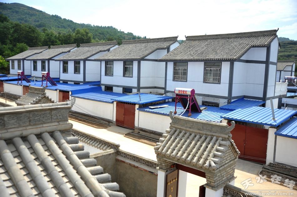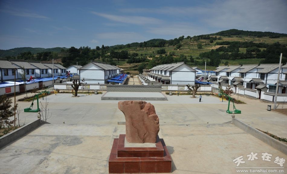 清水縣秦亭鎮(zhèn)趙堯一、三、四組地處鎮(zhèn)政府東北部3公里處的山坡高寒陰濕地帶,山大溝深,吃水、行路、就醫(yī)、上學(xué)難的問題長期困擾著當(dāng)?shù)厝罕。在“雙聯(lián)”政策扶持下,秦亭鎮(zhèn)趙堯村依托易地扶貧搬遷等項(xiàng)目,在繼趙堯二組搬遷新村后,于2013年初將趙堯一、三、四組列入省發(fā)改委易地扶貧搬遷項(xiàng)目并啟動(dòng)建設(shè),目前70戶農(nóng)戶的新居建設(shè)全面完成,巷道、院子硬化完畢,供排水、沼氣、太陽能路燈、文化廣場(chǎng)、花園及村莊綠化、建身器材、垃圾箱一應(yīng)俱全。