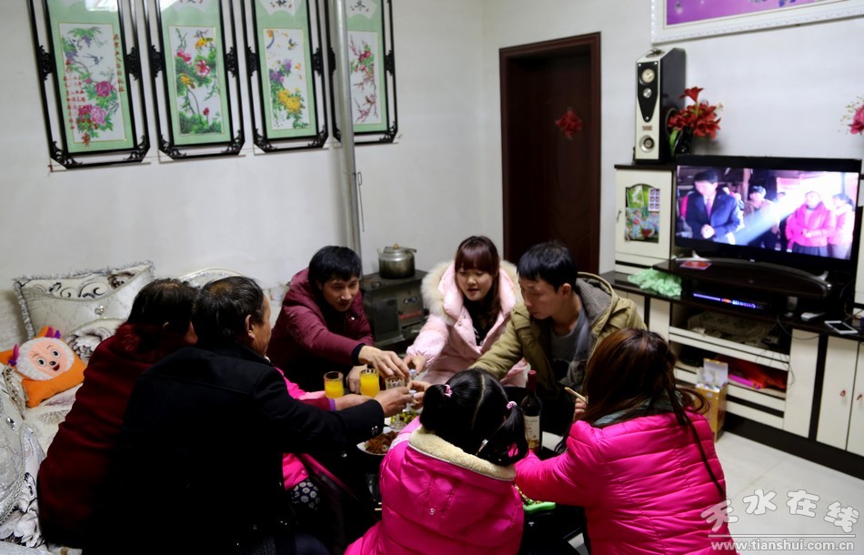 走進(jìn)清水縣白沙鄉(xiāng)馬溝新村,新建成的兩層別墅式小洋樓寬敞明亮,馬溝新村高高掛起的燈籠洋溢著喜氣,處處透著濃濃的年味。走進(jìn)藺建明家,屋內(nèi)一樓的客廳擺放著嶄新的沙發(fā)、茶幾、電視等家具,藺建民一家人正坐在亮堂的客廳里,歡天喜地的看著兒子結(jié)婚時(shí)錄制的光碟,吃著年夜飯,滿屋歡聲笑語(yǔ),叫人好不羨慕。
