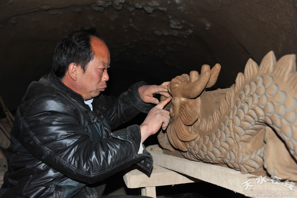 在清水縣永清鎮(zhèn)瓦溝村,有著1000多年歷史并流傳至今的脊獸捏制民間傳統(tǒng)手工藝。在該村附近山上的一個窯洞里,記者見到捏脊藝人袁小紅,他告訴記者:制作一個好的脊獸要嚴格把握好選土和泥、制作胚子、細心捏制、烘烤暴曬、精心打磨、耐心燒制等好幾道工序,才能成功。一塊泥巴,經(jīng)過他的把玩,漸漸變成紋理清晰、栩栩如生的神獸,顯得惟妙惟肖。