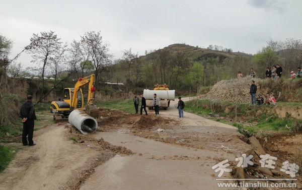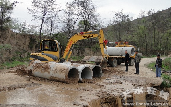 在了解了情況以后,王建興與村組干部經(jīng)過(guò)座談商議,決定首先為村民解決出行難問(wèn)題。經(jīng)過(guò)幾天的籌資和協(xié)調(diào)工作,下基層干部為村民送去了4根通水管涵,并協(xié)調(diào)調(diào)動(dòng)挖掘機(jī)、運(yùn)輸機(jī)等機(jī)械開(kāi)始作業(yè),將4根通水管涵并列一排,再加鋪墊,形成了一坐簡(jiǎn)單的便民橋,暫時(shí)解決了村民出行難問(wèn)題。
