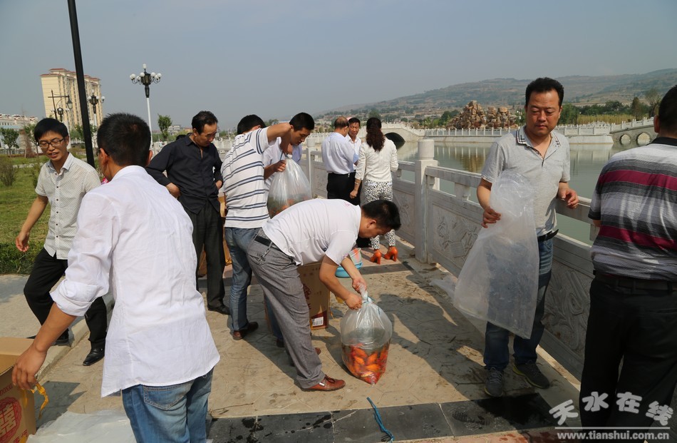 6月19日,清水縣舉行軒轅湖觀魚(yú)放生活動(dòng)?h委副書(shū)記、縣政協(xié)主席王新強(qiáng),縣委常委、政法委書(shū)記王馬代與廣大市民一同參加了觀魚(yú)放生活動(dòng)。