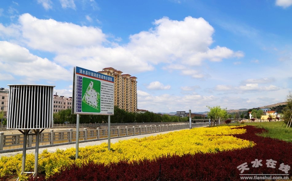 近年來(lái),清水縣搶抓華夏文明傳承創(chuàng)新示范區(qū)建設(shè)重大機(jī)遇,加快生態(tài)文明縣城建設(shè)。軒轅湖公園暨水舞廣場(chǎng)位于清水縣牛頭河北岸,紅崖觀西側(cè),總占地面積8.7萬(wàn)平方米。該公園的功能定位是健身休閑、文化娛樂(lè)、公共活動(dòng)。內(nèi)有溯源橋、始祖橋、中華橋、九州橋、龍?jiān)礃?座橋梁和環(huán)湖路構(gòu)成了瀏覽通道,設(shè)計(jì)有雕塑、噴泉、文化柱、景石、水榭、塑石硤谷、涼亭、假山、水車等景觀元素,建有竹林、美人蕉園、玉蘭園、牡丹園、月季園,湖體呈“龍”字和湖水入口“中”字造型,堆砌的軒轅丘山體,把軒轅黃帝與中華文化有機(jī)結(jié)合,體現(xiàn)了清水作為人文始祖軒轅黃帝出生地深厚的文化底蘊(yùn)。軒轅湖公園及水舞廣場(chǎng)的建成使用,在完善縣城功能,提升城市品位,改善城市面貌,豐富市民生活,加快宜居環(huán)境城市建設(shè)都具有十分重要的意義。