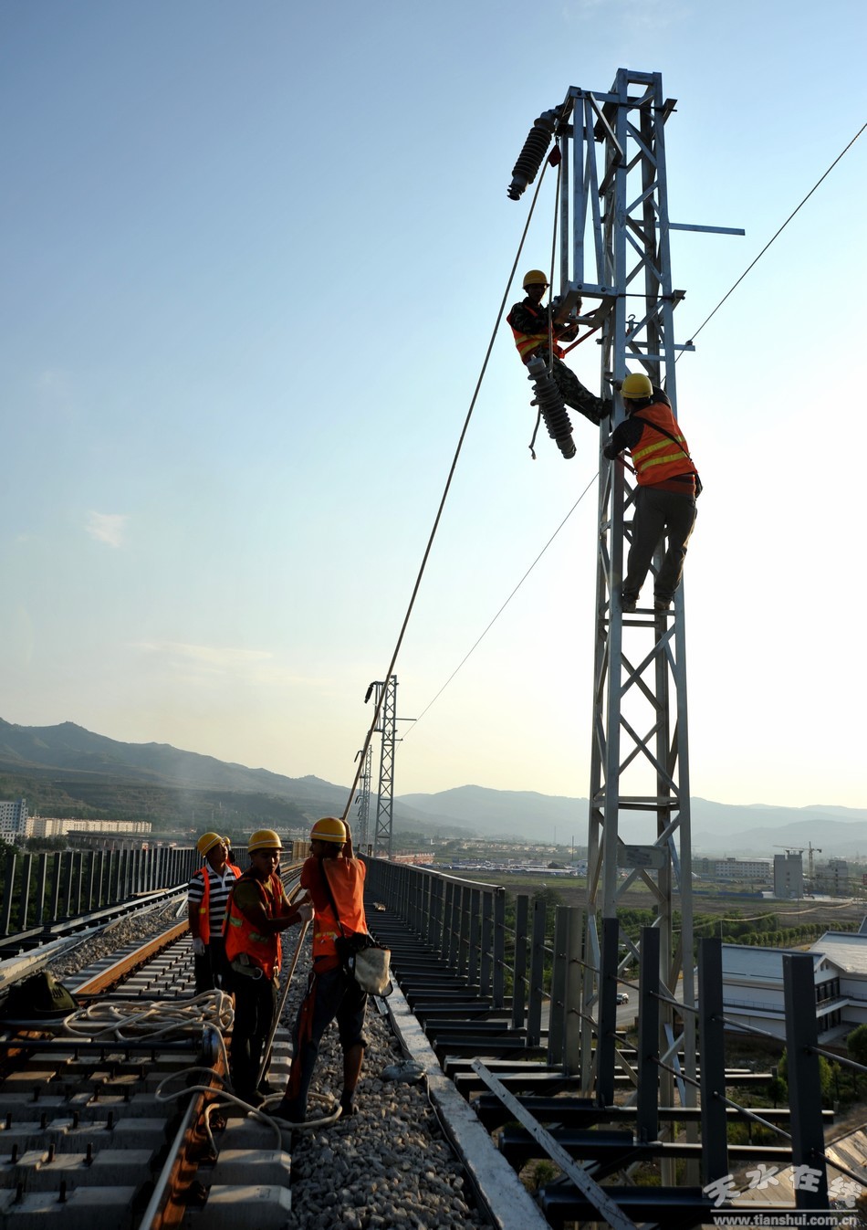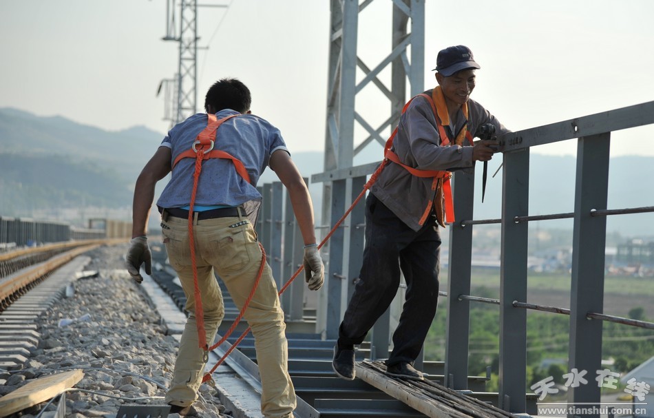 近日,筆者在天平鐵路清水特大橋上看到,工人們正在高空焊接鐵道護欄,目前天平鐵路清水段建設工程已進入了收尾階段。