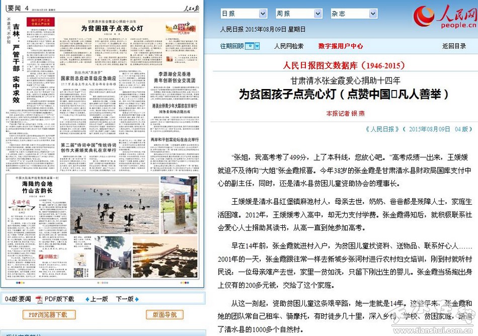 (人民日?qǐng)?bào)報(bào)道張金霞愛(ài)心事跡后,短短半天時(shí)間,引來(lái)全國(guó)40多家媒體紛紛轉(zhuǎn)載報(bào)道)