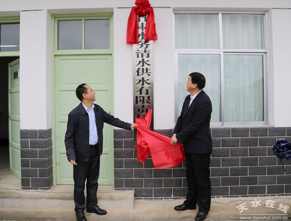 (甘肅省水務(wù)投資有限責(zé)任公司總經(jīng)理霍子俊與清水縣委書記劉天波為甘肅水務(wù)清水供水有限責(zé)任公司揭牌)