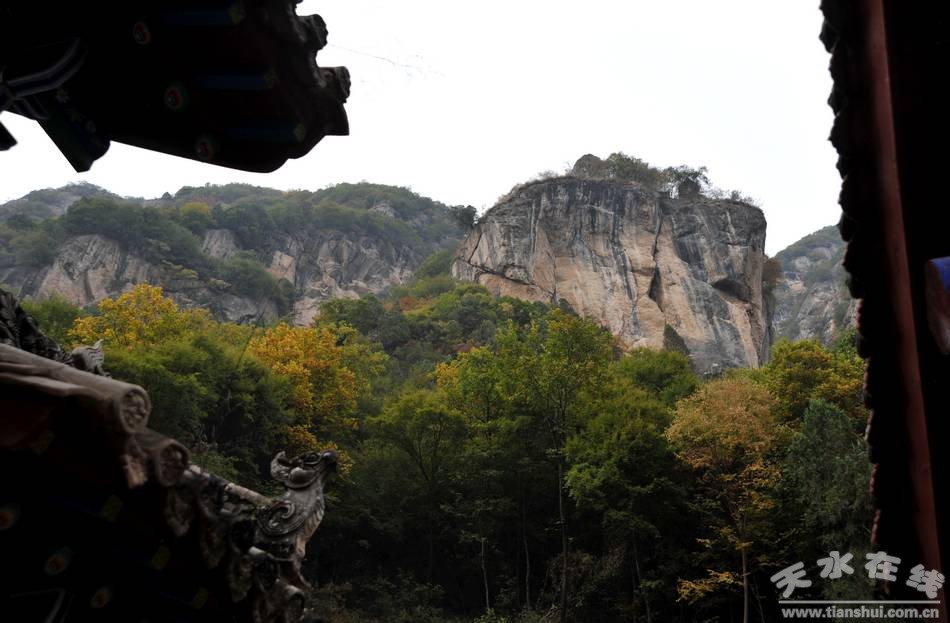 花石崖因山體懸崖峭壁,山石花紋五顏六色,故稱"花石崖",又因峰巒疊嶂,翠柏掩映,清泉流水,春花秋實(shí),萬(wàn)紫千紅,又名"萬(wàn)紫山",是佛道教并存的名山勝地。花石崖歷史悠久,相傳唐代以前,就建有廟宇,北宋重修二臺(tái)玉皇殿,現(xiàn)存明清石窟二處,內(nèi)有彩塑、壁畫(huà)和雍正歲次丙午題匾;ㄊ掳吹貏(shì)分為東崖、西崖。東崖峰巒起伏,石崖重疊,向上傾斜,懸崖峭壁上有一石洞。名曰"黃木狼洞",相傳是《西游記》中孫悟空大戰(zhàn)黃木狼的洞穴,洞口高約3米,地形險(xiǎn)要,洞深莫測(cè);ㄊ滤薪ㄖ锒家郎饺(shì),逐臺(tái)修建。大體可分為"磨針殿"、"大殿院"、"玉皇殿"、"雷音崖"四大部分。從谷底沿山而上,有一巨石,平地而起,高約50米,頂闊而平,大約有10平方米。1998年春,天水著名書(shū)法家毛惠民先生以紅學(xué)為依托,聯(lián)想到深厚的伏羲文化淵源,在此石之上書(shū)寫(xiě)"補(bǔ)天石"三字。上有"磨針殿",殿內(nèi)有隋代塑像二尊,為"觀音點(diǎn)化、祖師修道"之形象,造像生動(dòng)逼真。兩側(cè)壁畫(huà)為"太子游四門(mén)、祖師成道"圖,線條工細(xì),色艷筆暢,均為明清作品。第一臺(tái)是一進(jìn)二院。前院門(mén)樓是一座木結(jié)構(gòu)牌坊,上書(shū)"通仙閣",接著是廊,名曰"通仙橋"。過(guò)了"通仙橋",沿著石階而上有"靜石臺(tái)"。進(jìn)入"大殿院",北為"老君殿",南有"靈官殿",東為"藥王殿",西是"三霄殿"。二臺(tái)是"祖師殿"。殿前是一刀切齊的懸崖峭壁,高約百丈。從玉皇殿側(cè)沿谷而上為三臺(tái)。"財(cái)神殿"、"三官樓"依巖雄立。三官樓有清代塑像三尊。樓下沿石縫而上,崖頂有一平臺(tái)設(shè)"三清殿"。
