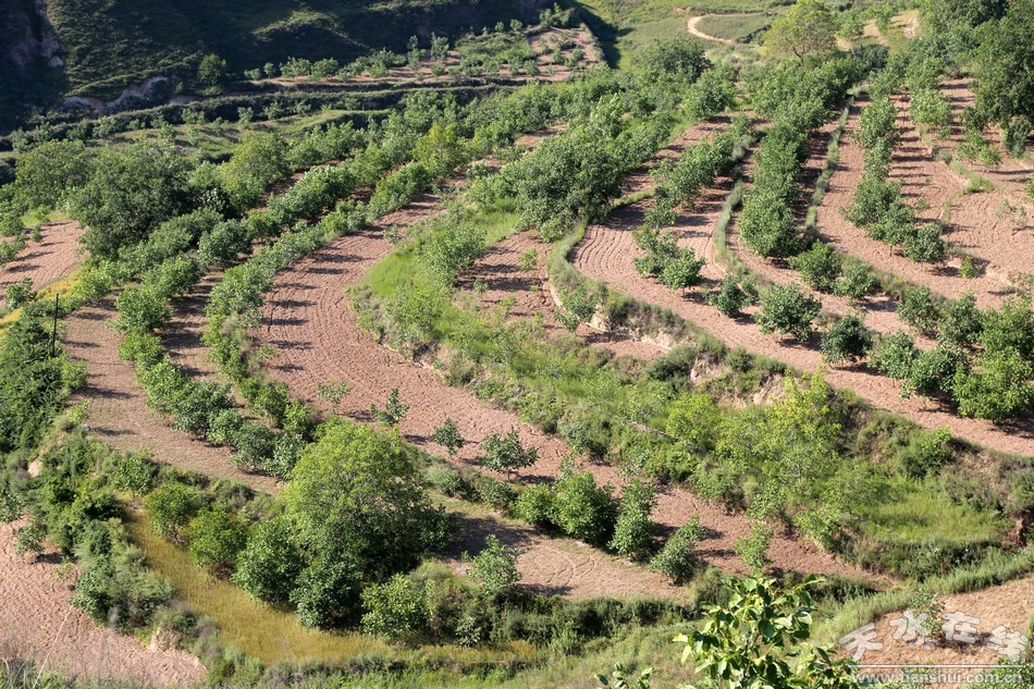 因地制宜,科學規(guī)劃。清水縣海拔在1112米—2201米之間,年平均氣溫9.6℃、降水總量524mm,日照時數(shù)2169小時,土層深厚,土壤肥沃,四季分明,氣候溫和,是天水地區(qū)“薄皮核桃”的最佳適宜區(qū)之一。縣委、縣政府立足資源優(yōu)勢,在全縣適宜區(qū)規(guī)劃建設(shè)優(yōu)質(zhì)干鮮果基地60萬畝,其中:圍繞“6個5萬畝”規(guī)劃核心示范區(qū)30萬畝、輻射帶動區(qū)30萬畝。為確保完成年度建設(shè)任務,縣上及早安排部署,于前一年夏收之后立即著手次年度干鮮果基地規(guī)劃,各鄉(xiāng)鎮(zhèn)與涉及區(qū)域農(nóng)戶簽訂預留地協(xié)議書,把任務落實到地塊和農(nóng)戶;并及時與省市銜接申報項目,為全面實施“修梯田、建路渠、栽果樹、覆全膜、調(diào)結(jié)構(gòu)、促增收”的產(chǎn)業(yè)發(fā)展計劃打好基礎(chǔ)。