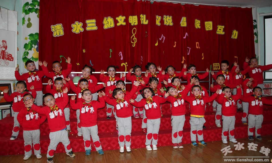 為了營(yíng)造一個(gè)學(xué)禮儀、講禮儀、懂禮儀的氛圍,從小培養(yǎng)孩子學(xué)禮儀、用禮儀、做文明人的意識(shí),同時(shí),也為幼兒提供一個(gè)展現(xiàn)自我的舞臺(tái),讓他們勇于表達(dá),善于表達(dá)自己,讓孩子們的語(yǔ)言表達(dá)能力、口語(yǔ)發(fā)展能力得到進(jìn)一步提高。近日,清水三幼舉行了文明禮儀說(shuō)唱家園互動(dòng)活動(dòng)。