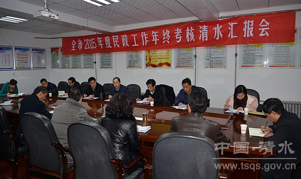 12月23日,由天水市民政局副局長晏平帶領(lǐng)市老齡辦、市局辦公室、市局救災(zāi)科、區(qū)劃地名科等負(fù)責(zé)人,就清水縣2015年度民政工作目標(biāo)責(zé)任書完成情況進(jìn)行了考核。清水副縣長楊泉陪同考核。