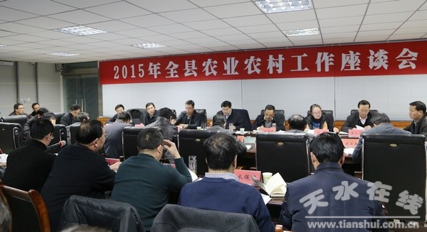 6、1月8日,清水縣委書記劉天波主持召開2015年全縣農(nóng)業(yè)農(nóng)村工作座談會,傳達學(xué)習(xí)了中央農(nóng)村工作會議精神、中央經(jīng)濟工作會議精神和省委常委會議有關(guān)精神,聽取了各相關(guān)部門的工作匯報,安排部署2015年全縣各項重點農(nóng)業(yè)農(nóng)村工作。