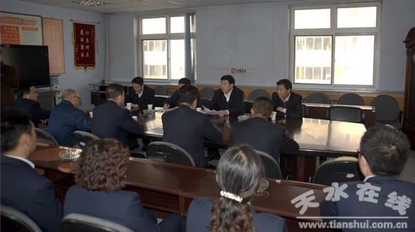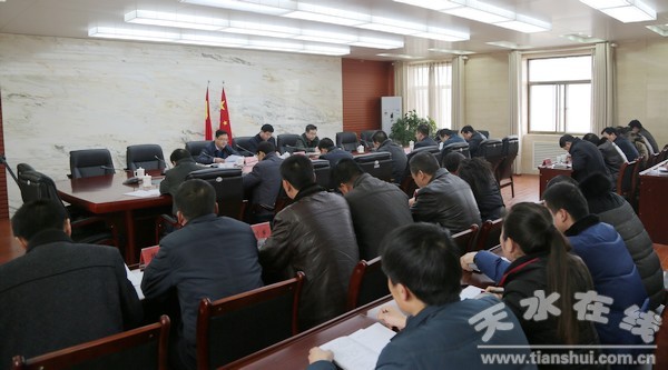 20、2月3日,清水縣委書記劉天波主持召開縣委中心組學(xué)習(xí)暨縣四大組織聯(lián)席會議,傳達學(xué)習(xí)了中央和省委一號文件精神及習(xí)近平總書記在中央紀(jì)委五次全會上的重要講話精神,王岐山書記在中央紀(jì)委五次全會上的工作報告精神,省十二屆人大三次會議精神等中央和省市有關(guān)文件、會議精神,安排部署了近期重點工作。