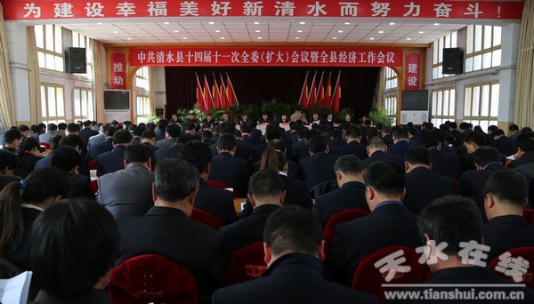 25、2月8日下午,清水縣召開縣委十四屆十一次全委(擴大)會議暨全縣經(jīng)濟工作會議。清水縣委書記劉天波同志代表縣委常委會作了工作報告;縣委副書記、縣長馬越垠同志安排了2015年全縣經(jīng)濟工作。會議強調(diào)全縣上下要統(tǒng)一思想行動,適應(yīng)新常態(tài),搶抓新機遇,努力開創(chuàng)清水崛起跨越發(fā)展新局面。