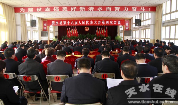 34、2月14日上午,清水縣第十六屆人民代表大會第四次會議圓滿完成了各項議程后,在清水縣政府北二樓會議室勝利閉幕,縣委書記劉天波出席會議并講話。