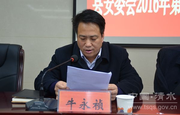 中共清水縣委書記劉天波,縣委副書記、縣長馬越垠,縣委常委、常務(wù)副縣長牛永禎,縣委常委、組織部長周濟(jì),縣人大常委會副主任趙愛平,縣政協(xié)副主席李應(yīng)祥出席會議。各鄉(xiāng)鎮(zhèn)、縣安委會成員單位及重點(diǎn)企業(yè)負(fù)責(zé)人參加會議。