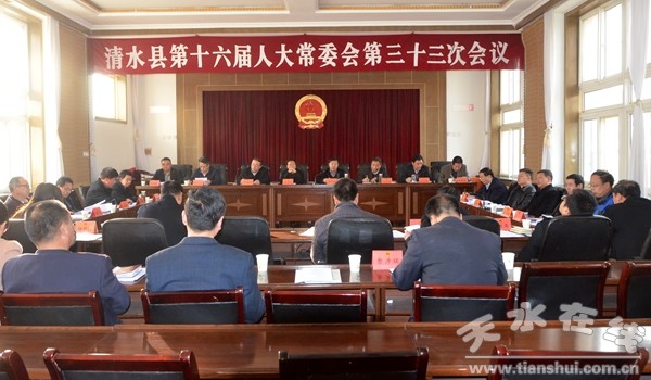 3月1日,清水縣人大常委會主任趙云清主持召開第十六屆人大常委會第三十三次會議?h人大常委會副主任宋宏亮、趙愛平、畢德祥、劉志偉出席會議,縣委常委、常務(wù)副縣長牛永禎,縣法檢兩院及縣直有關(guān)部門、單位負(fù)責(zé)人列席會議。