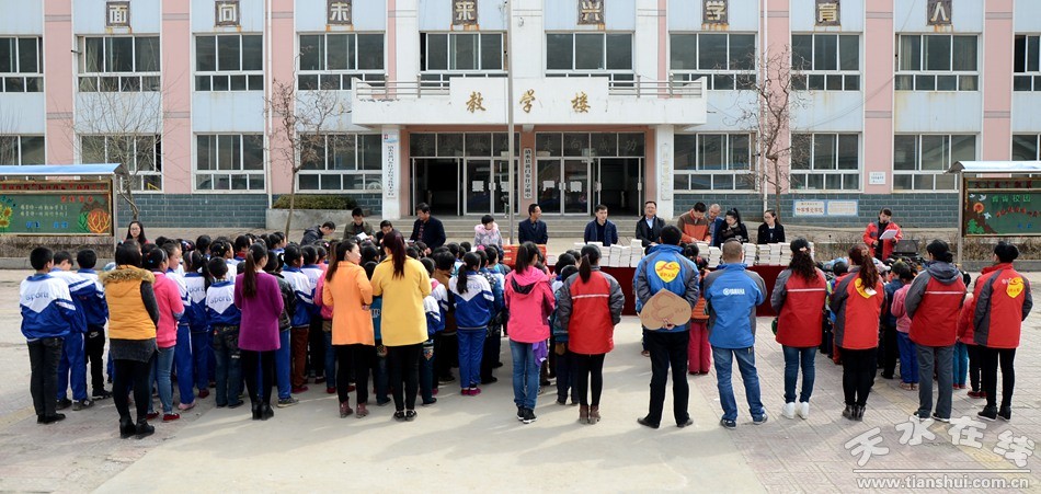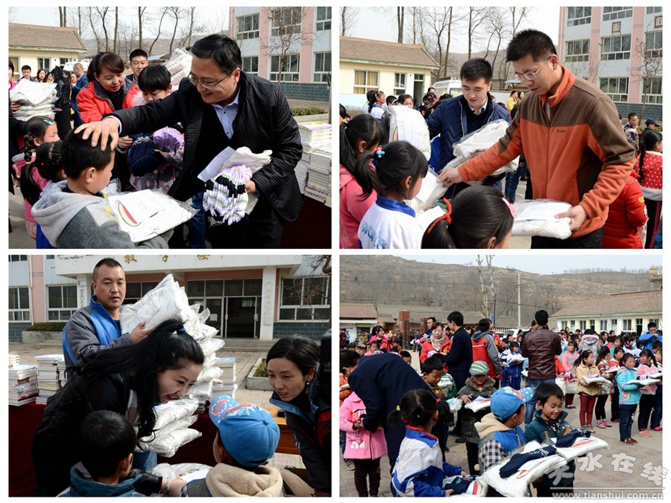 3月12日,在清水縣黃門鎮(zhèn)什字附中,本來是周六的校園內(nèi)卻是人聲鼎沸,歡笑聲不斷,孩子們正在愛心人士的組織下高興的玩著游戲。當天,什字附中迎來了一批特殊客人———愛心企業(yè)甘肅新世紀書刊有限責任公司的愛心人士。此行,該愛心企業(yè)給學校送來了嶄新的圖書等愛心物資,為邊遠山區(qū)孩子送來了點燃希望的精神食糧。清水縣委常委、組織部長周濟,清水縣“一對一”貧困兒童資助協(xié)會部分會員,馬什附中小學部的師生及部分學生家長參加了捐贈活動。