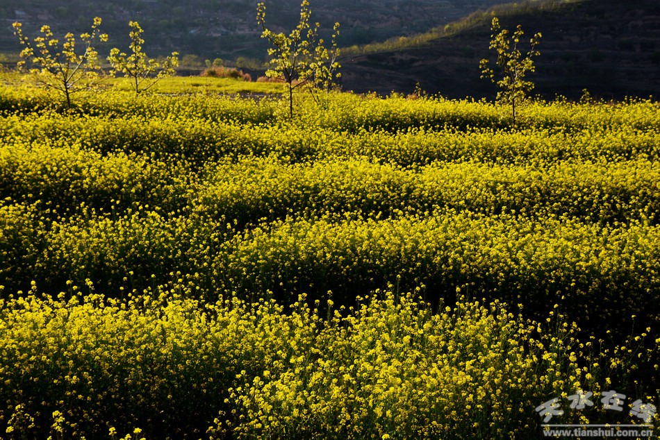 走近西靈山現(xiàn)代農(nóng)業(yè)觀光旅游示范園,滿山遍野都是金黃色的油菜花,一陣春風(fēng)吹來,陣陣清香鉆入鼻孔,招來了很多蜜蜂,油菜花成為蜜蜂的天地,在金黃色的舞臺上跳著柔和而優(yōu)美的舞姿,它們一會兒在空中飛舞,一會兒靜靜地停留在油菜花上是如此迷人。
