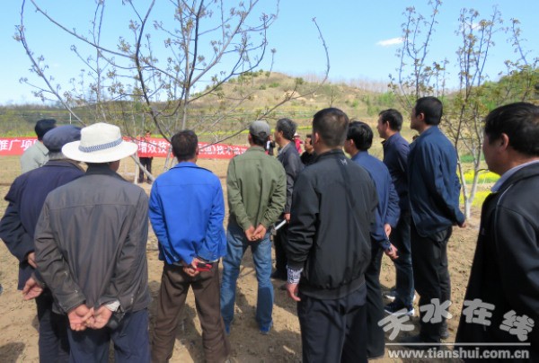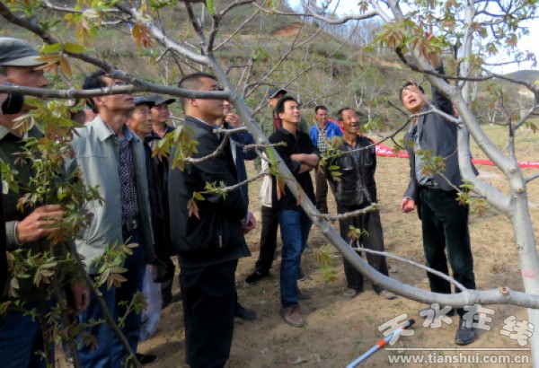 4月27日,清水縣邀請甘肅省林業(yè)廳和西北農(nóng)林大學(xué)的果樹專家深入清水縣草川鋪鄉(xiāng),在該鄉(xiāng)黃崖村核桃點(diǎn)舉辦核桃基地提質(zhì)增效技術(shù)培訓(xùn)工作,對核桃樹如何進(jìn)行整形修剪、方塊芽接高接換優(yōu)等技術(shù)進(jìn)行了現(xiàn)場培訓(xùn)。