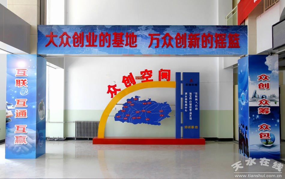 清水縣電商中心和眾創(chuàng)空間位于天水農(nóng)校北校區(qū),由創(chuàng)客工作室(內(nèi)設(shè)創(chuàng)客咖啡廳)、創(chuàng)業(yè)實(shí)訓(xùn)室、電商中心(線下體驗(yàn)館)三部分組成,是清水縣深入貫徹落實(shí)省上精準(zhǔn)扶貧電商支持計(jì)劃,依托天水農(nóng)校職業(yè)教育資源,實(shí)施校地聯(lián)建“互聯(lián)網(wǎng)+”行動(dòng),創(chuàng)新探索創(chuàng)客空間、創(chuàng)業(yè)咖啡、創(chuàng)新工場(chǎng)等新型孵化模式,建成的集創(chuàng)意策劃、創(chuàng)業(yè)培訓(xùn)、宣傳推介、業(yè)務(wù)洽談、網(wǎng)店?duì)I銷為一體的創(chuàng)新創(chuàng)業(yè)孵化園。