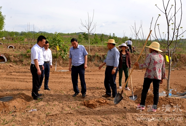 馬越垠一行查看了科技示范園核桃樹的長勢情況,全面了解病害蟲的防治工作,并現(xiàn)場就核桃園的管理和套種等工作作了安排部署。馬越垠指出,西靈山核桃示范園區(qū)是天水市8個現(xiàn)代農(nóng)業(yè)示范園區(qū)之一,是清水縣現(xiàn)代農(nóng)業(yè)的一張名片,也是一個展示全縣農(nóng)業(yè)產(chǎn)業(yè)綜合發(fā)展形象的窗口。項目全面建成后,可進一步提高地方優(yōu)勢產(chǎn)品的市場競爭力,提高清水產(chǎn)業(yè)、環(huán)境的綜合效能,有效帶動全縣林果產(chǎn)業(yè)的發(fā)展,為推動核桃大縣建設(shè)、生態(tài)環(huán)境建設(shè)、后續(xù)產(chǎn)業(yè)的發(fā)展積累經(jīng)驗,創(chuàng)造模式。