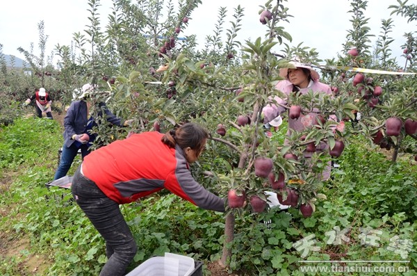 “往年一過完年,就要丟下孩子父母去外面打工,現(xiàn)在我在這兒上班,一個月能有1800多元的收入,加上土地流轉的租金,每年的純收入都有好幾萬”正在采摘蘋果的村民楊新萍介紹說。