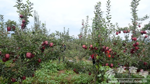 金秋時節(jié),正是瓜果飄香喜獲豐收的季節(jié),清水縣永清鎮(zhèn)陳家塬千畝矮砧密植蘋果示范園內(nèi)的蘋果已陸續(xù)成熟。一顆顆大小均勻,色度飽滿的蘋果掛滿枝頭,煞是誘人,走進果園,摘蘋果、篩選、裝箱、……到處一片繁忙的景象。漫步在果園里,一股濃烈的果香撲鼻而來,惹得人饞涎欲滴。伸手摘下一個,咬上一口,清香滿口。園子里六十多位采摘人員正提著框子采摘蘋果,整筐整筐采摘好的蘋果鋪滿一地,正在等待裝車運往庫房。