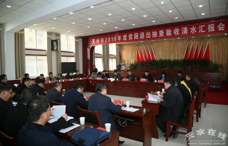 在當(dāng)天上午召開的匯報會上,市第七抽查驗(yàn)收組組長、市政協(xié)副主席王振宇,市扶貧辦主任楊保珍及驗(yàn)收組成員詳細(xì)聽取了縣委、縣政府的工作匯報。市人大常委會副主任、清水縣委書記劉天波主持匯報會;縣委副書記、縣長馬越垠代表清水縣委、縣政府匯報了全縣2016年度貧困退出驗(yàn)收工作。縣領(lǐng)導(dǎo)王新強(qiáng)、張濤、馬利民、周濟(jì)、張煒、李振、馬小平和縣脫貧攻堅領(lǐng)導(dǎo)小組成員單位和非成員單位相關(guān)主要負(fù)責(zé)人參加會議。