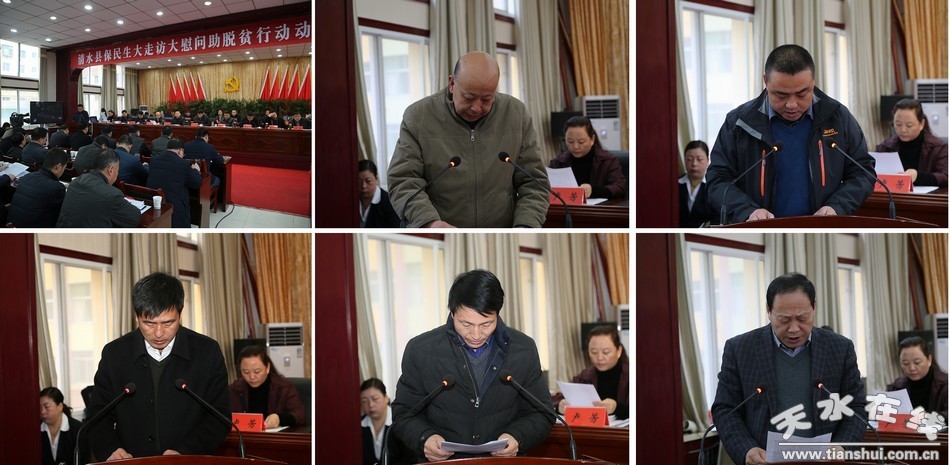動員會上,市人大常委會副主任、縣委書記劉天波作了講話;縣委常委、常務副縣長牛永禎宣讀了《清水縣保民生大走訪大慰問助脫貧行動實施方案》;縣水務局、供電公司、住建局、民政局、衛(wèi)計局、食藥監(jiān)局、交警隊、秦亭鎮(zhèn)、新城鄉(xiāng)、遠門鄉(xiāng)負責人作了發(fā)言。