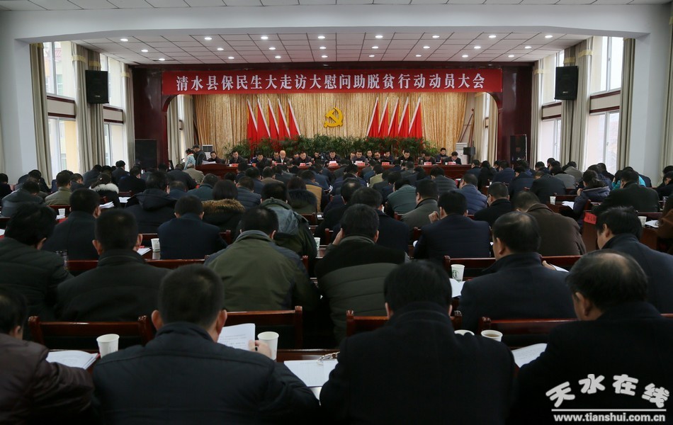 1月9日,清水縣召開“保民生大走訪大慰問助脫貧行動”動員大會,動員全縣上下積極投入到保民生大走訪大慰問助脫貧行動中來,著力解決好人民群眾普遍關心的突出問題,集中力量做好普遍性、基礎性、兜底性民生工程,助推脫貧攻堅取得新的成效,確保全縣社會大局和諧穩(wěn)定、人民群眾安居樂業(yè)、節(jié)日氛圍喜慶祥和。