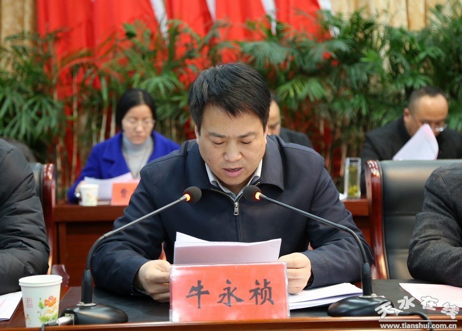 (縣委常委、常務副縣長牛永禎宣讀《清水縣保民生大走訪大慰問助脫貧行動實施方案》)