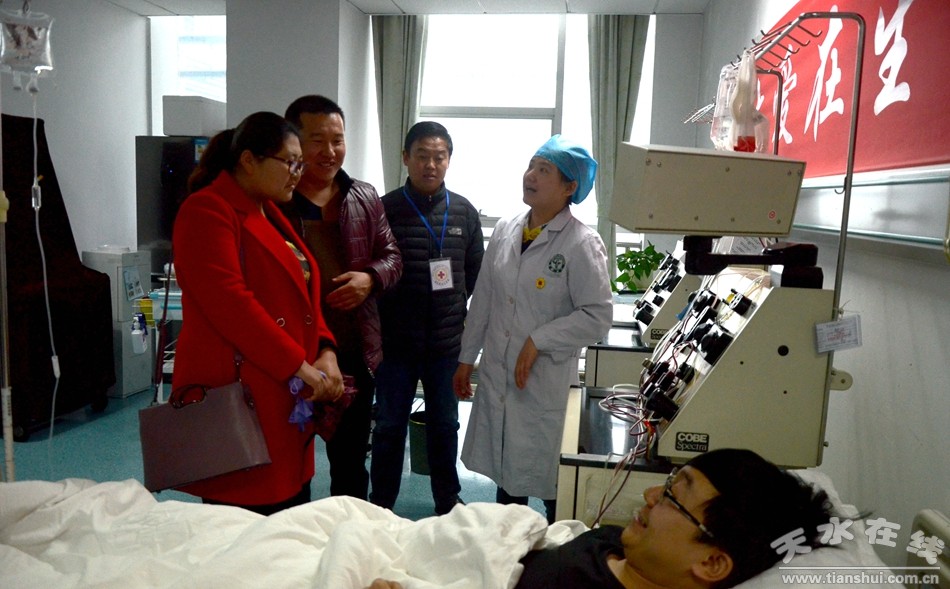 在唐都醫(yī)院造血干細(xì)胞移植中心,李宏偉正好遇見了來自陜西韓城的一位造血干細(xì)胞志愿者—王輝,他正在進(jìn)行著造血干細(xì)胞的采集,當(dāng)谷真醫(yī)生相互介紹了他們的情況后,兩個(gè)同齡人便像親人般交流了起來,并相互加油鼓勁,王輝給李宏偉說:“我用自己的親身經(jīng)歷告訴你,采集過程不疼,別怕,加油!”同時(shí),谷真醫(yī)生還詳細(xì)的向李宏偉介紹了造血干細(xì)胞的采集過程。