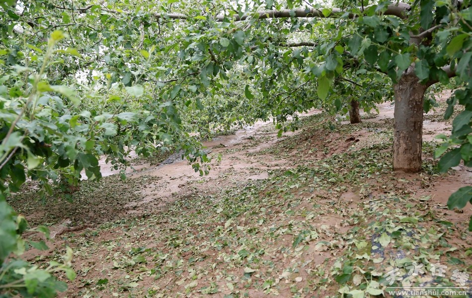 5月18日17時(shí)53分,清水縣出現(xiàn)短時(shí)大風(fēng)陣雨冰雹天氣,冰雹直徑最大2厘米,持續(xù)最長(zhǎng)時(shí)間越30分鐘左右,蘋(píng)果、油菜籽、玉米、大櫻桃、花椒、洋芋、胡麻、小麥、核桃等農(nóng)作物受災(zāi)。坐果期的蘋(píng)果、核桃、花椒、成熟期的大櫻桃果面被打傷、果子被打落在地,油菜籽嚴(yán)重倒伏平鋪,玉米葉子打成細(xì)絲。