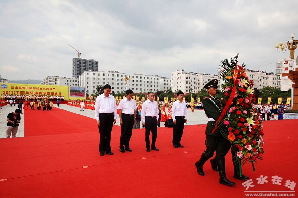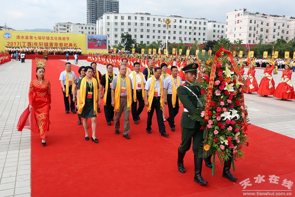 出席今天祭祀典禮的領(lǐng)導(dǎo)和嘉賓有:中共甘肅省委原副書記、省關(guān)工委主任李虎林,甘肅省人大常委會(huì)原副主任李膺、程有清,甘肅省政協(xié)原副主席張景輝,甘肅省軍區(qū)原副政委楊耀春、原副司令員張臣剛、原政治部主任石新貴;中共天水市委書記王銳,天水市人大常委會(huì)主任王光慶,中共天水市委副書記、市長王軍,天水市政協(xié)主席張明泰;甘肅省委政策研究室副巡視員傅良君,省委宣傳部副部長彭鴻嘉,省委老干局副局長、省關(guān)工委副主任吳萍,省政府參事、省城鄉(xiāng)發(fā)展投資集團(tuán)有限公司董事長王歡祥,省社科院副院長王俊蓮,省畜牧獸醫(yī)局副局長周生明,省引洮工程建設(shè)管理局副局長牛軍,省衛(wèi)計(jì)委副巡視員安平,小隴山林業(yè)實(shí)驗(yàn)局副局長潘德乾;天水師范學(xué)院紀(jì)委書記李淳,省公路管理局副局長朱暉,省工行資深經(jīng)理柴新仁;天水市委常委、市委秘書長、政法委書記蔣曉強(qiáng),市委常委、常務(wù)副市長趙衛(wèi)東,市人大常委會(huì)副主任蒲朝暉、劉天波、宋建平,市政府副市長張建杰,市政協(xié)副主席王振宇,天水軍分區(qū)副司令員周力等省直部門有關(guān)領(lǐng)導(dǎo)、市直部門、兩區(qū)四縣領(lǐng)導(dǎo),友好縣區(qū)、合作院校、幫扶單位領(lǐng)導(dǎo)、軒轅文化研究會(huì)會(huì)員和清水縣四大組織領(lǐng)導(dǎo)、離退休老干部及城鄉(xiāng)群眾參加了祭祀典禮。