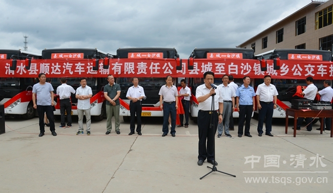 7月17日上午,清水縣隆重舉行順達(dá)汽車運輸有限責(zé)任公司縣城至白沙鎮(zhèn)城鄉(xiāng)公交車投放儀式, 清水縣委常委、副縣長牛永禎參加儀式并宣布公交車投入運營。