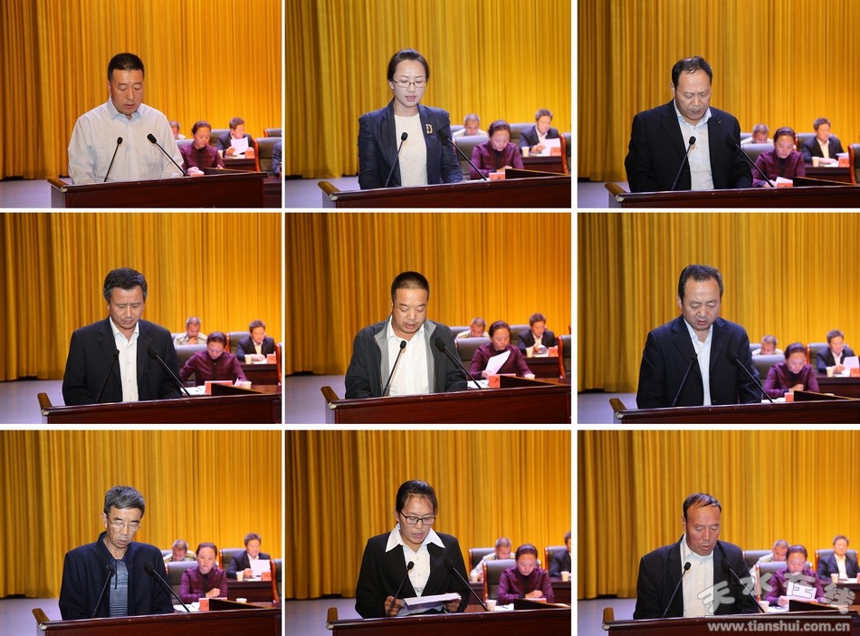 (縣住建局、教體局、衛(wèi)計(jì)局、水務(wù)局、秦亭鎮(zhèn)、新城鄉(xiāng)主要負(fù)責(zé)人及山門(mén)鎮(zhèn)腰套村、土門(mén)鎮(zhèn)梁山村、豐望鄉(xiāng)紅灣村黨支部書(shū)記分別作發(fā)言。)
