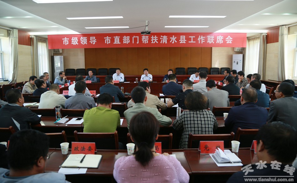 9月6日上午,天水市政協(xié)在清水縣召開市級領(lǐng)導(dǎo)和市直單位幫扶清水工作聯(lián)席會議,就下一階段加強清水縣脫貧攻堅幫扶力量、細(xì)化完善幫扶措施、全面打響新一輪脫貧攻堅殲滅戰(zhàn)進(jìn)行了安排部署。