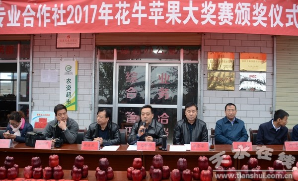10月24日,清水縣金集鎮(zhèn)金果果品種植農民專業(yè)合作社舉辦2017年花牛蘋果大獎賽頒獎儀式。清水縣委副書記王新強出席頒獎儀式;縣農業(yè)局、果業(yè)局、科協(xié)、工商局、商務局等負責人及金果果品合作社社員參加了頒獎儀式。