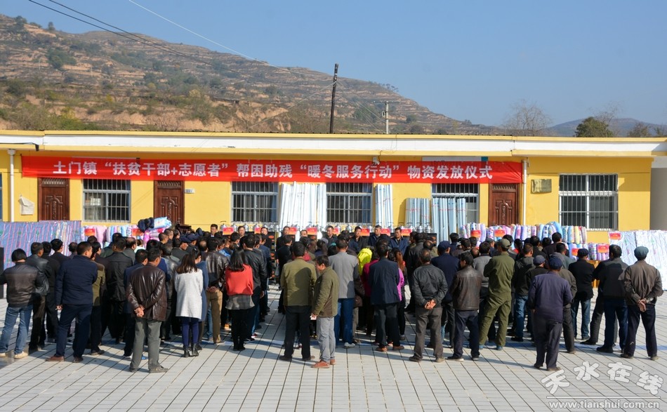 物資發(fā)放儀式上,清水縣縣委副書記王新強作了講話;縣委常委、紀委書記馬利民作了致辭;土門鎮(zhèn)黨委書記王長榮匯報了土門鎮(zhèn)“扶貧干部+志愿者”幫困助殘“暖冬服務行動”工作進展情況。