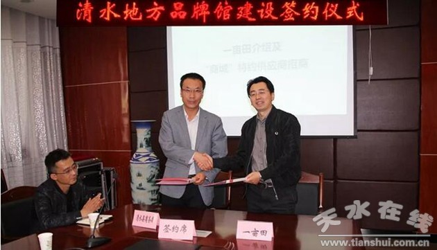 為進(jìn)一步推動(dòng)清水縣電商扶貧工作,促進(jìn)農(nóng)產(chǎn)品上行,助力縣域品牌打造,增加農(nóng)民收入。4月19日,“一畝田”清水地方品牌館建設(shè)簽約儀式成功舉行,清水縣委常委、統(tǒng)戰(zhàn)部部長(zhǎng)李振、清水縣政府副縣長(zhǎng)王懷珍出席簽約儀式,縣商務(wù)局局長(zhǎng)張偉、一畝田新農(nóng)網(wǎng)絡(luò)科技有限公司副總裁彭南峰分別代表雙方簽約。
